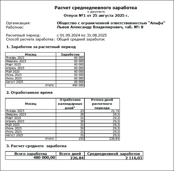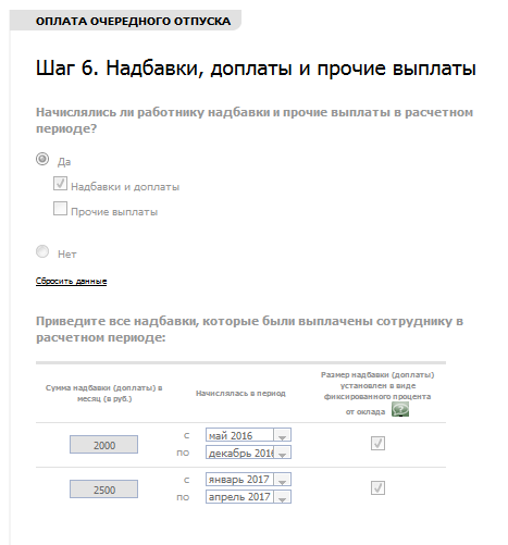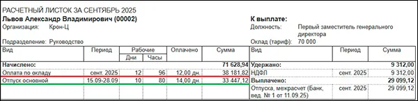 Отпускные в размере оклада