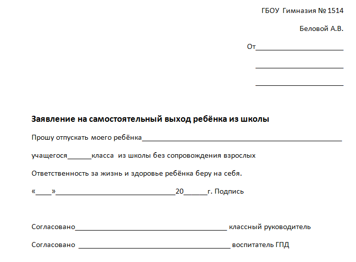 Отпустить ребенка как называется