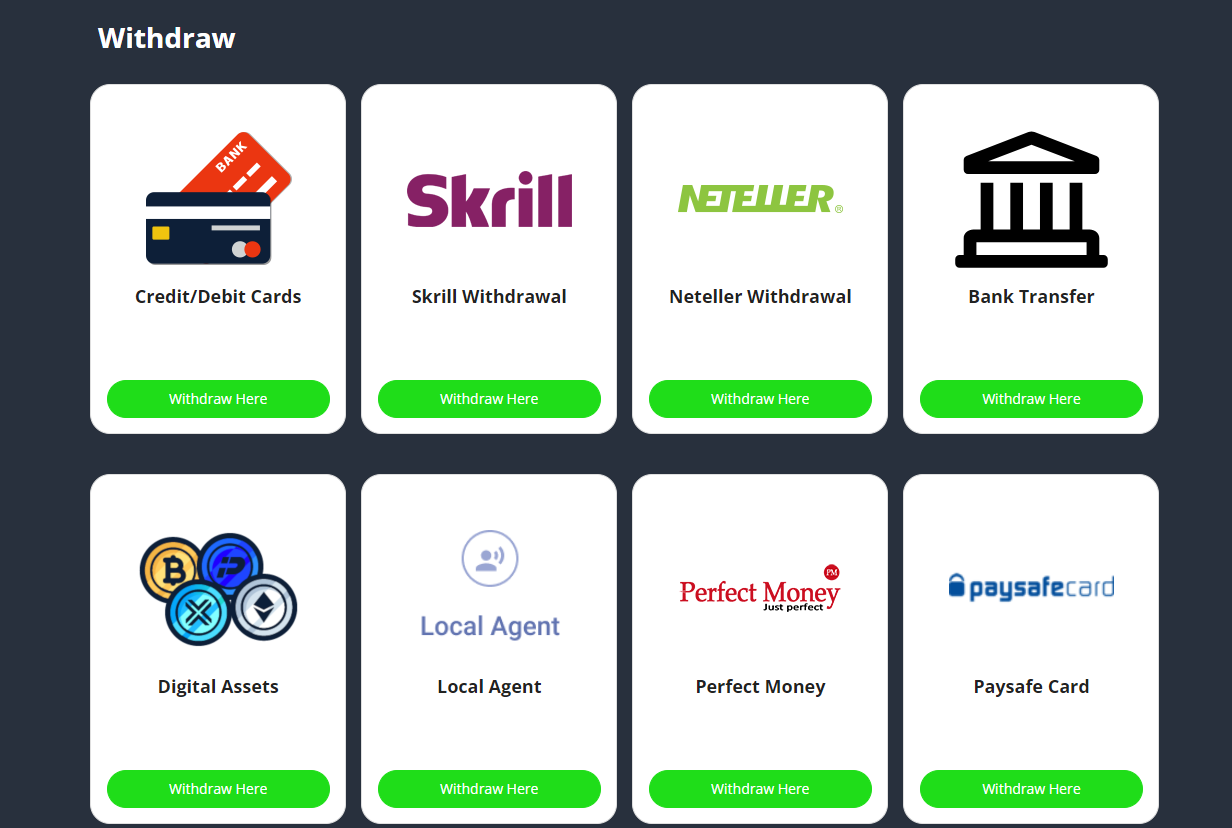 Политика у компании такая: Если ты делал депозит с карты, вывод только на ту же карту. Если с банка - только банк, крипта - только в крипту и так далее.