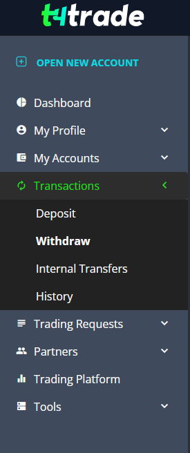 Теперь покажу для самых маленьких, как делается вывод. Для этого в левом меню выбираем пункт: Transactions -> Withdraw: