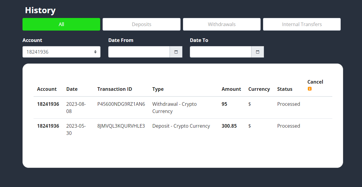 Так вот, без геморроя выводятся только аккаунты, где был депозит с крипты. То есть, если вы видите в истории, что был депозит с крипты, сразу бегите и выводите себе на кошелек! А если были депозиты со всего остального, уже понадобится социальная инженерия и долгое общение с ТП, но об этом позже.