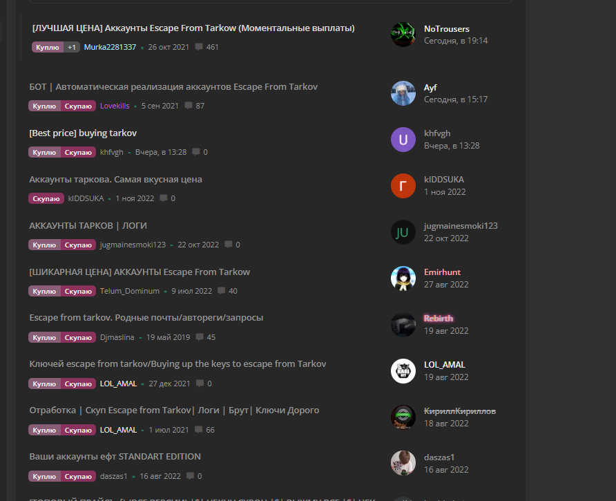 Так что идем на форум Lolz.guru в раздел 'Торговля - Игры - Escape From