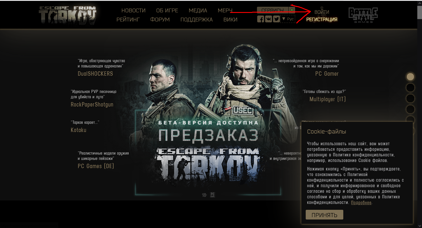 Пишем в поиске battlestate и если есть письма, то переходим на сайт - www.escapefromtarkov.com