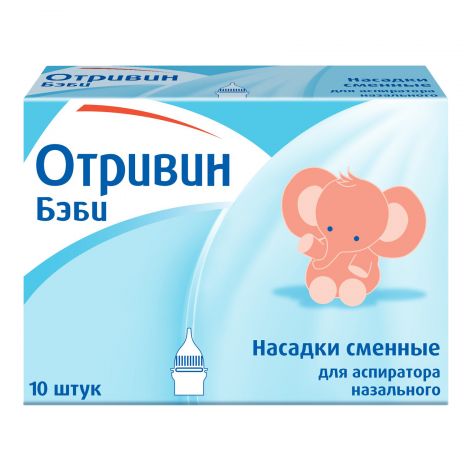 Отривін Бебі аспіратор назальний з трьома змінними насадками . Ефективний та гігієнічний пристрій для м'якого та більш повного видалення секрету з носа дитини спеціально розроблений для малюків до одного року, які не вміють сякатися .
