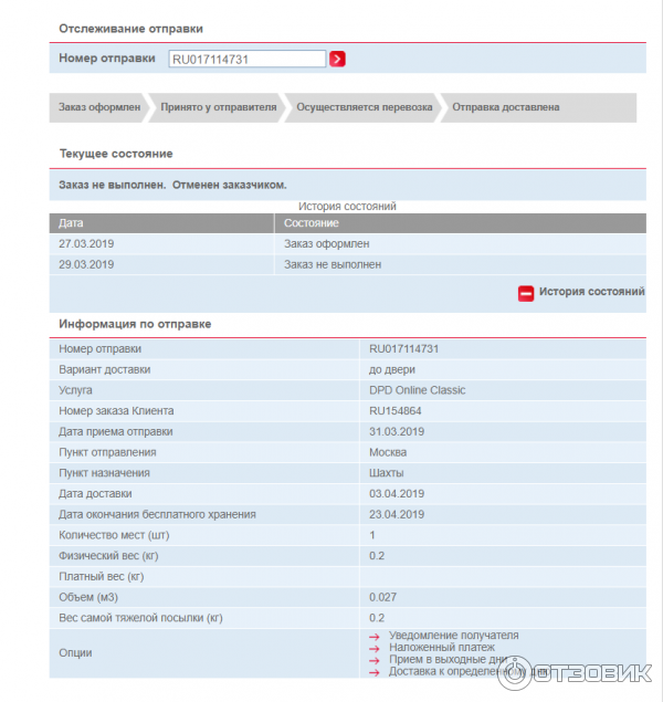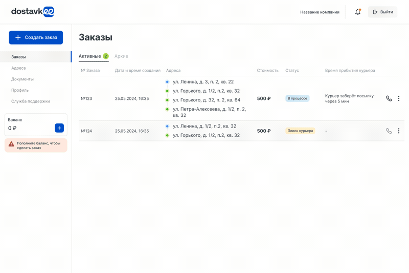Отслеживание доставки курьером