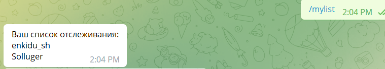 Для того чтобы посмотреть на кого вы подписались нужно ввести команду /mylist