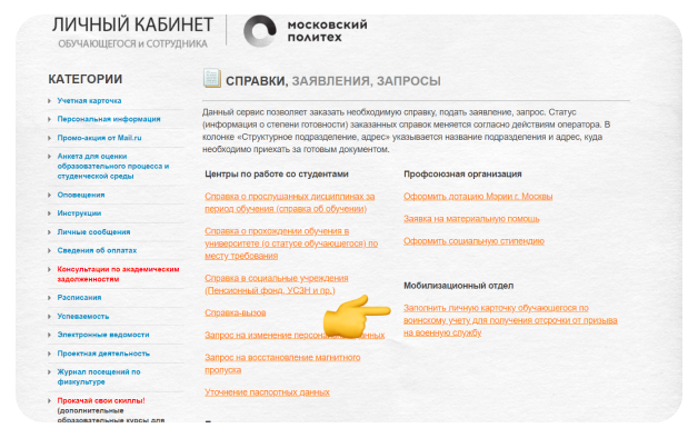 Московский ПолитехВажная информация для студентов очного отделения для постановки на воинский учет и получения справок об отсрочке