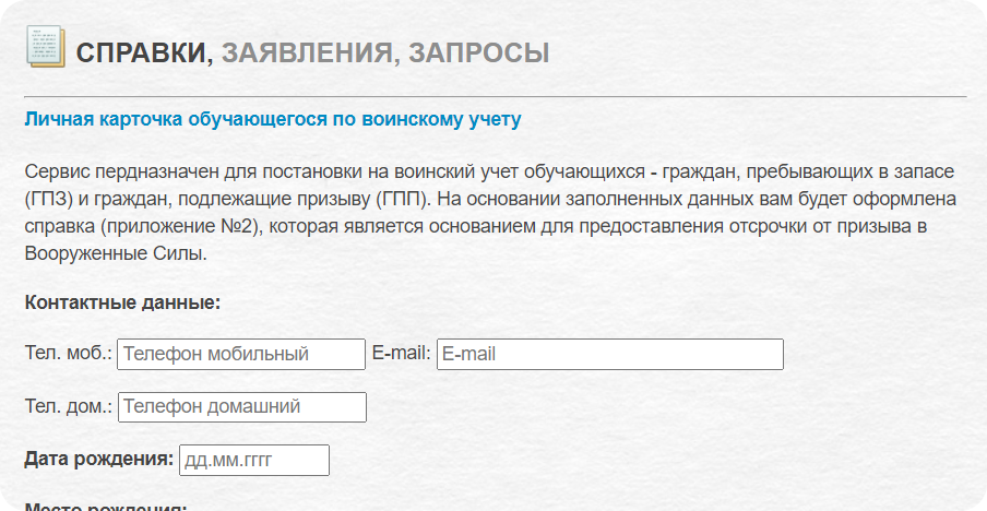 После заполнения будет оформлена справка (Приложение №2), которая является основанием для предоставления отсрочки от призыва в Вооруженные Силы РФ.