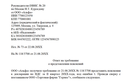 Ответ на требование 93