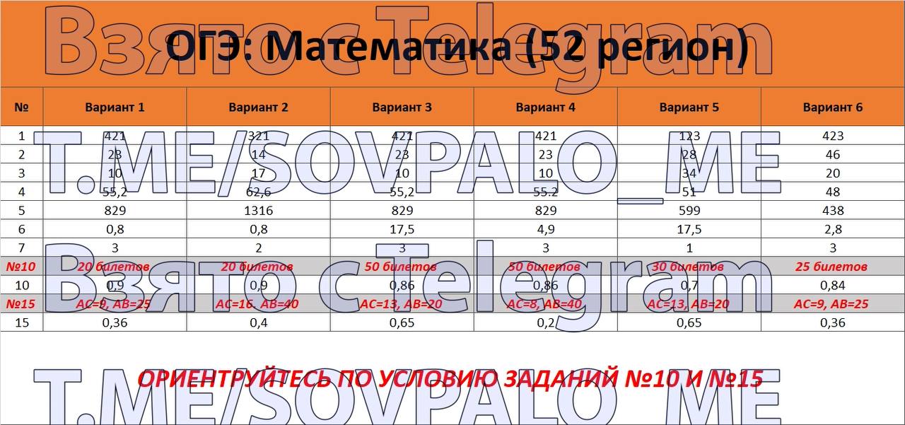 Ответы математика 52 регион