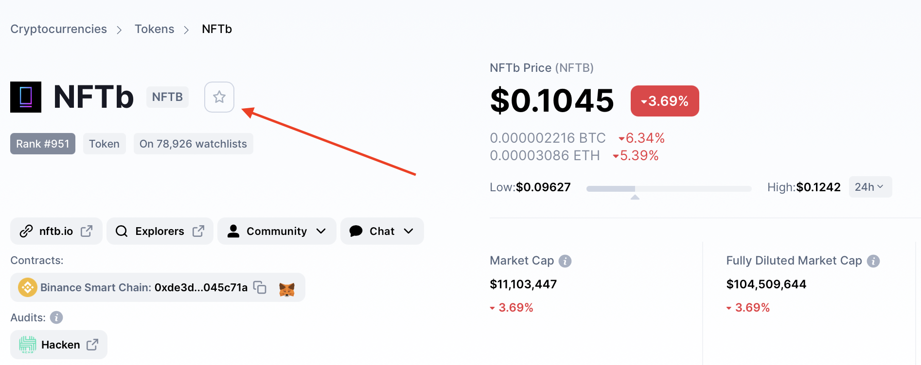- Переходим на страницу NFTB на CoinMarketCap