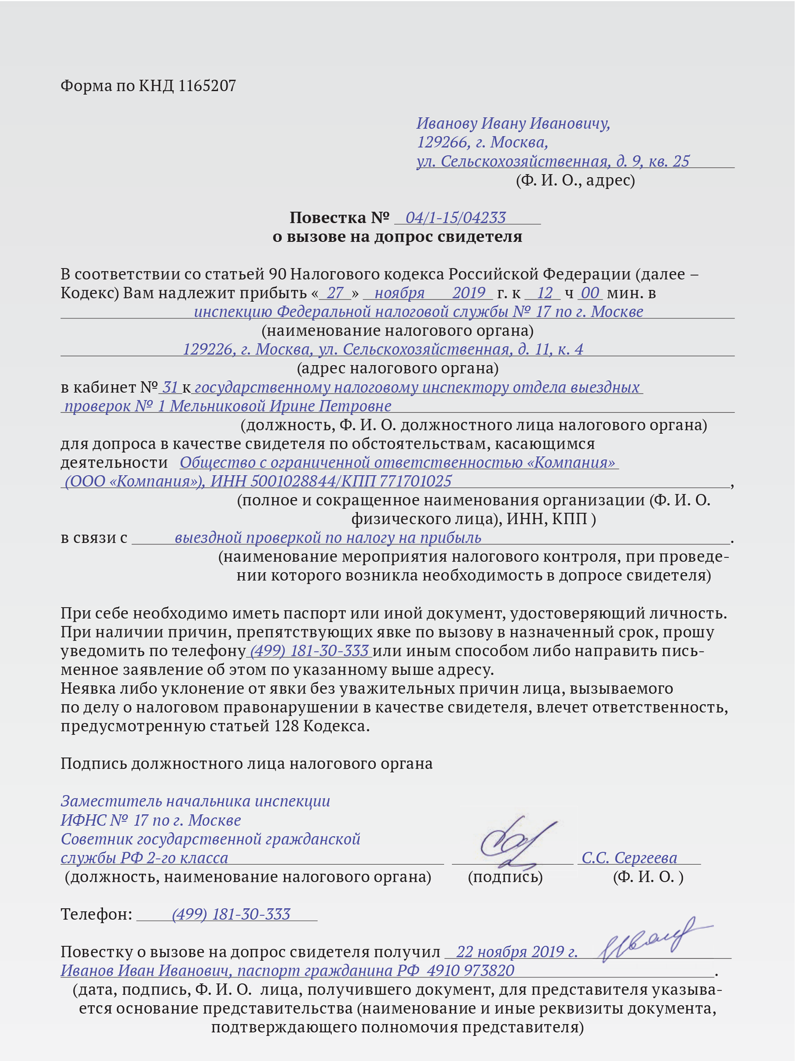 Ответы на допрос налоговой 112 фото