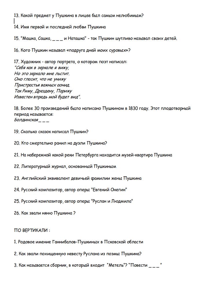 Ответы о пушкине вопросы