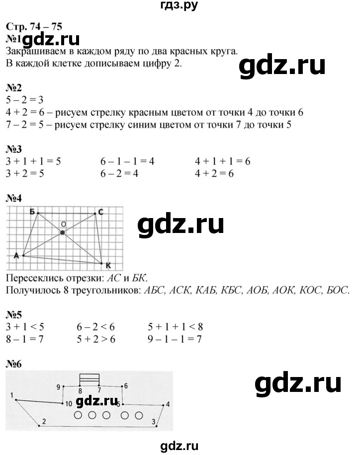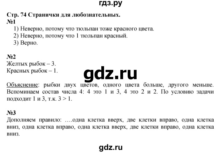 Ответы по математике 1 класс стр 74