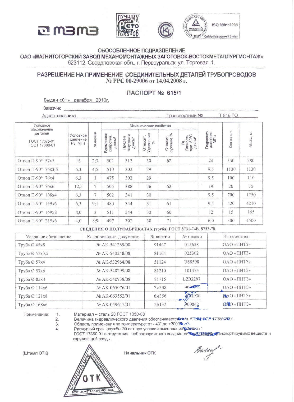 Отвод пэ сертификат