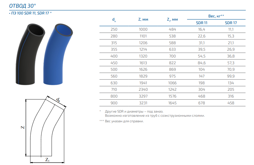 Отводы пнд размеры
