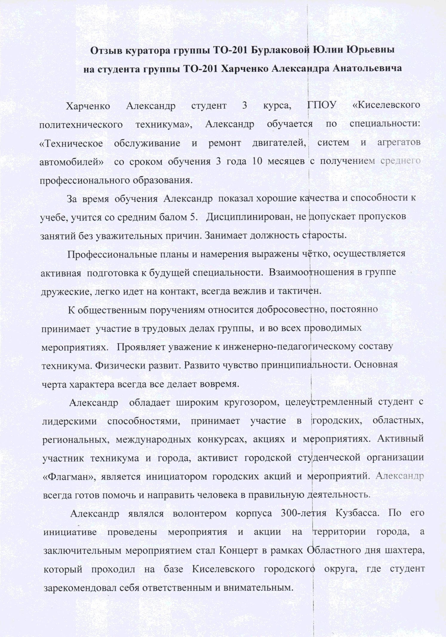 Отзыв о работе куратора