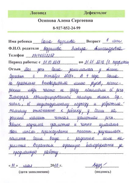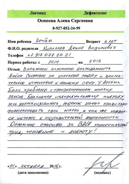 Отзывы логопеду своими словами