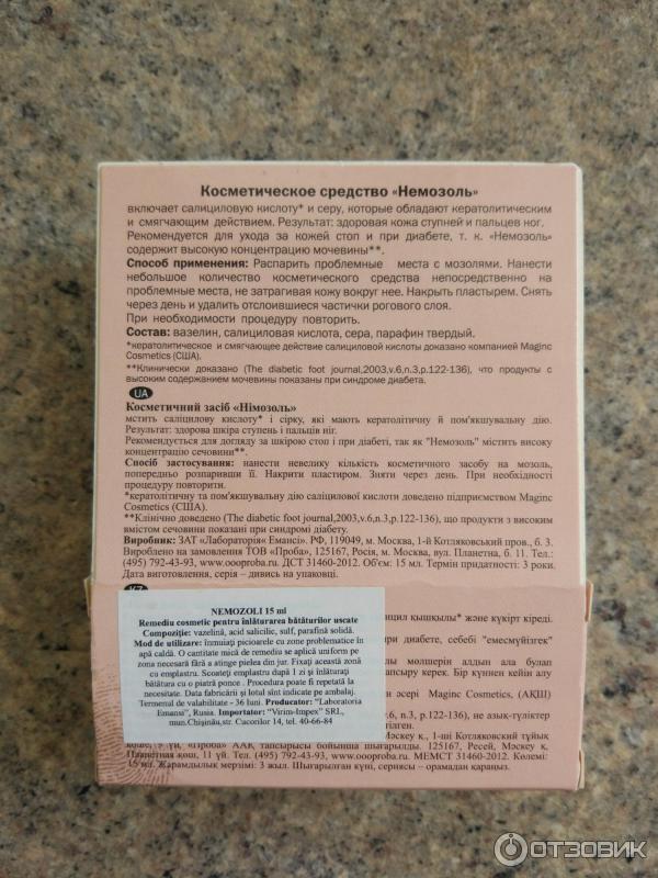 Отзывы о немозоле