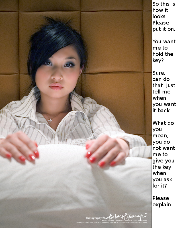 I've had a supermarket cashier just say 'nice key' knowingly . But if a friend has asked iI too tend to opt out to the 'key to my heart' line, although in my head it's all 'Haven't you heard of male chastity? I keep hubby's cock locked in a cage . You should try .' It's so much easier to be brave on the blog! I have seen one other woman wear one . . .