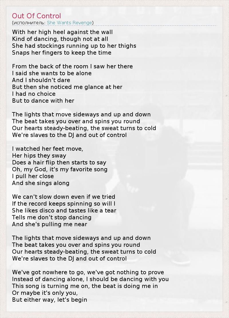 Out of control перевод she wants 111 фото