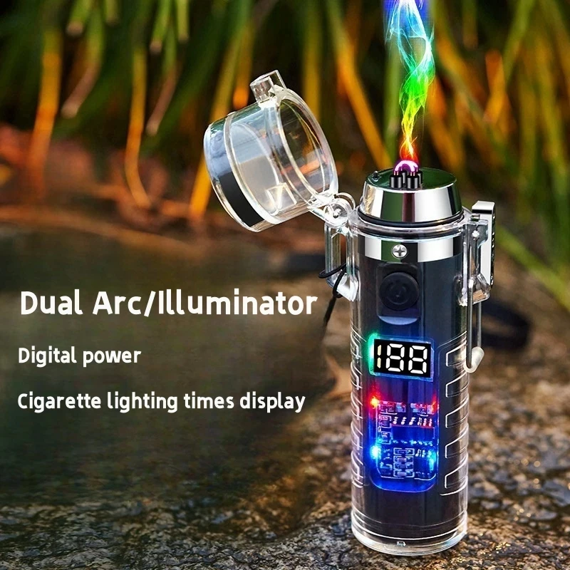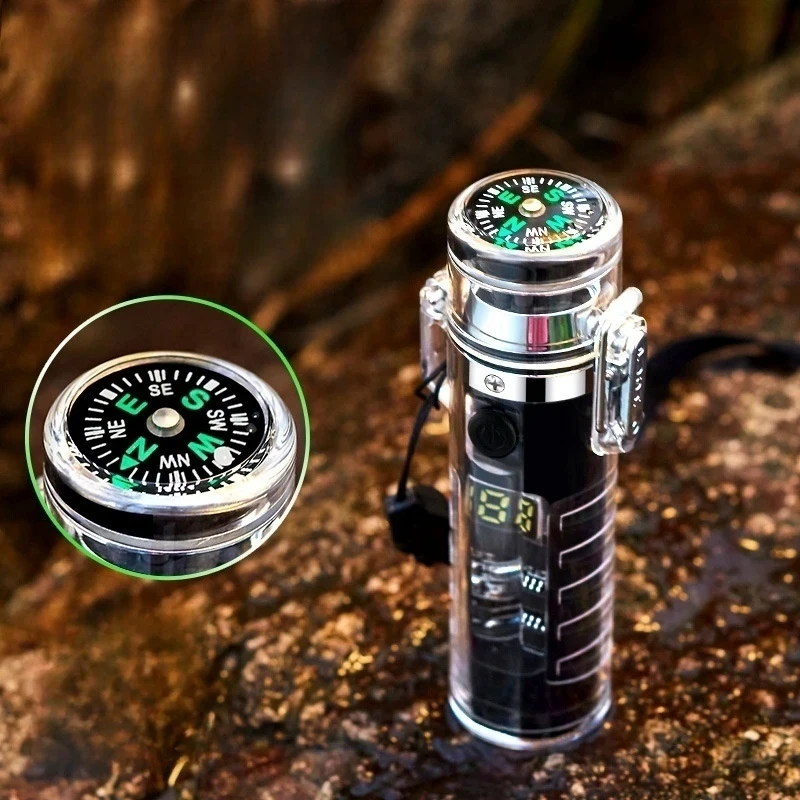MaMswBAKHere you can buy Outdoor Camping Waterproof Compass Electric Dual Arc Type-C Plasma USB Lighter Multi-Function Flashlight Survival Ignition Tool with free delivery to your post office.