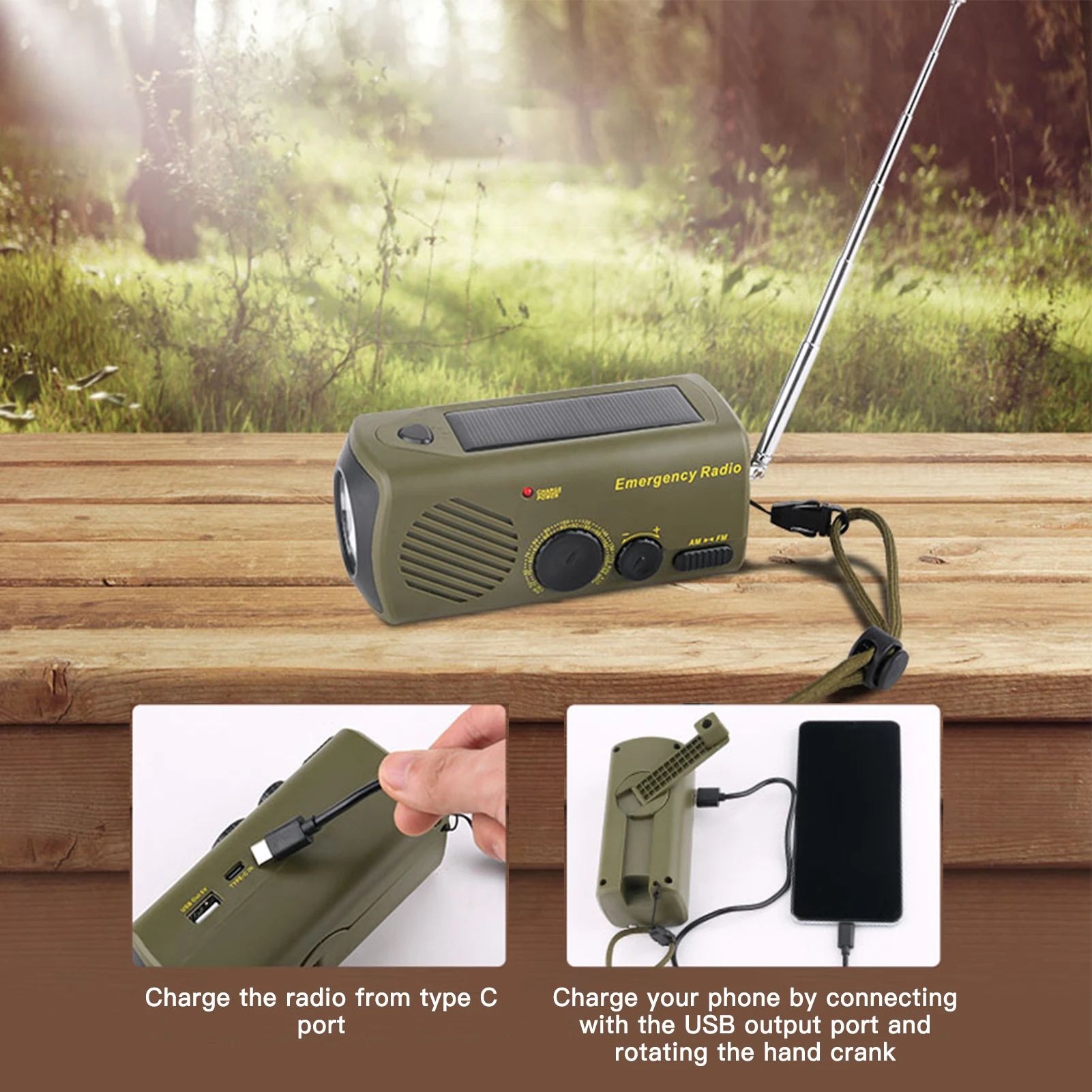 RUqIknnkGCHere you can buy Outdoor Emergency Radio Solar Charging Hand Crank Portable USB Rechargeable Flashlight SOS Alarm Power Bank For Survival Tools with free delivery to your post office.