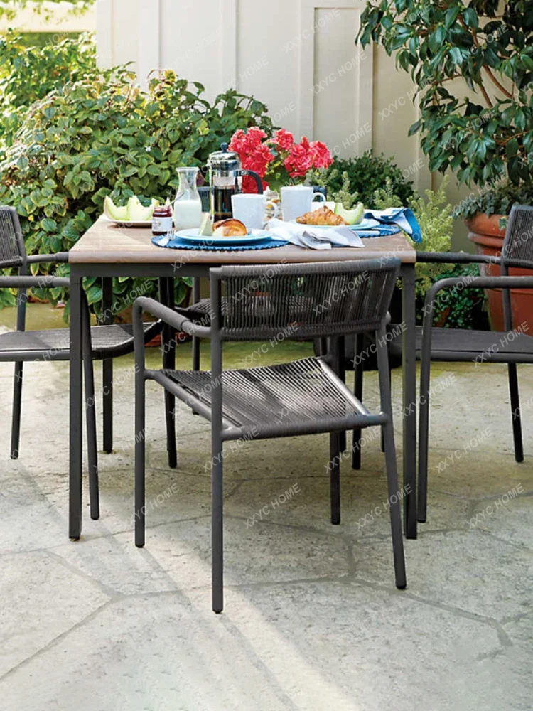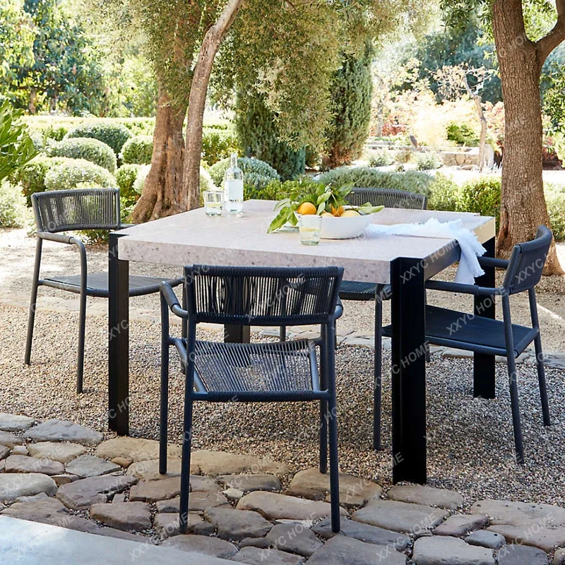 kqKykSwGbmHere you can buy Outdoor Rattan Chair Solid Wood Table Artificial Stone Long Table Outdoor Waterproof Sun-Resistant Leisure Dining Table Chair with free delivery to your post office.