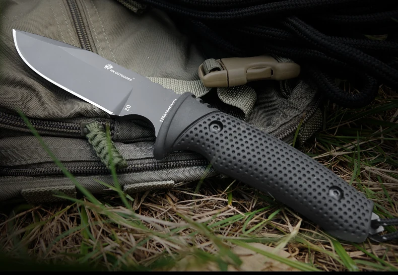 D2 steel outdoor hunting survival knife with G10 handle and Kydex sheath