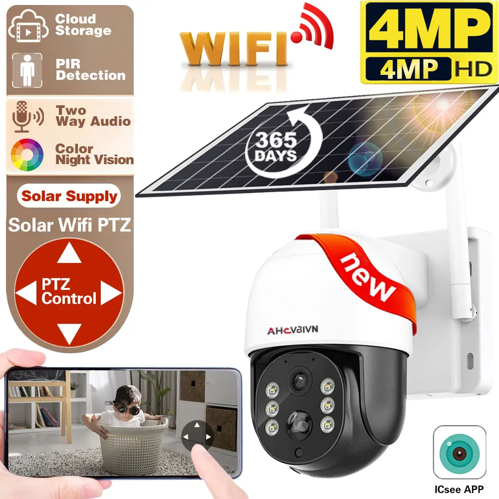 hjSChbhhHere you can buy Outdoor WIFI Solar Camera 4MP Security With Solar Panel Wireless Surveillance Color Night PTZ Battery CCTV PIR Detection ICsee with free delivery to your post office.