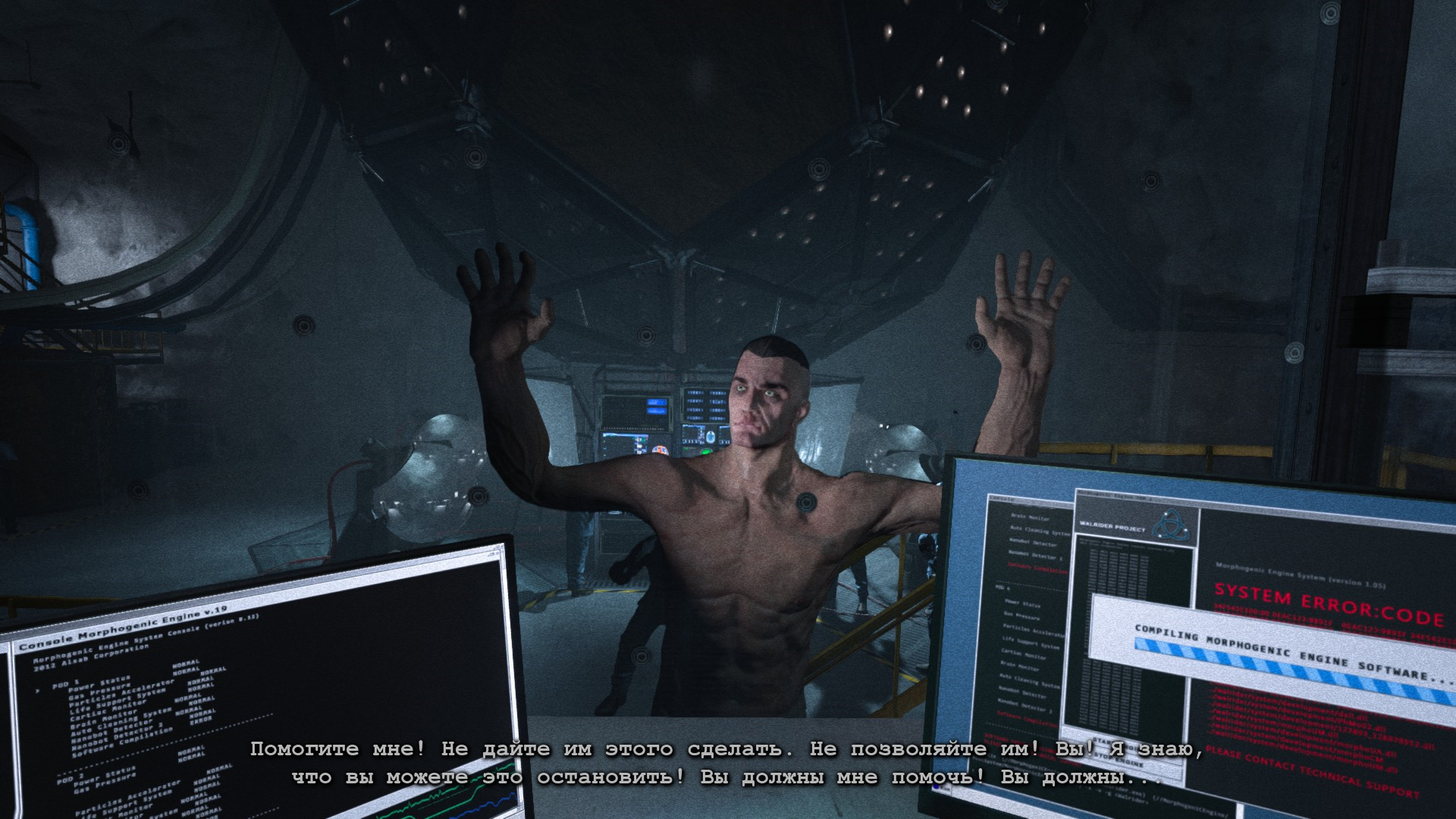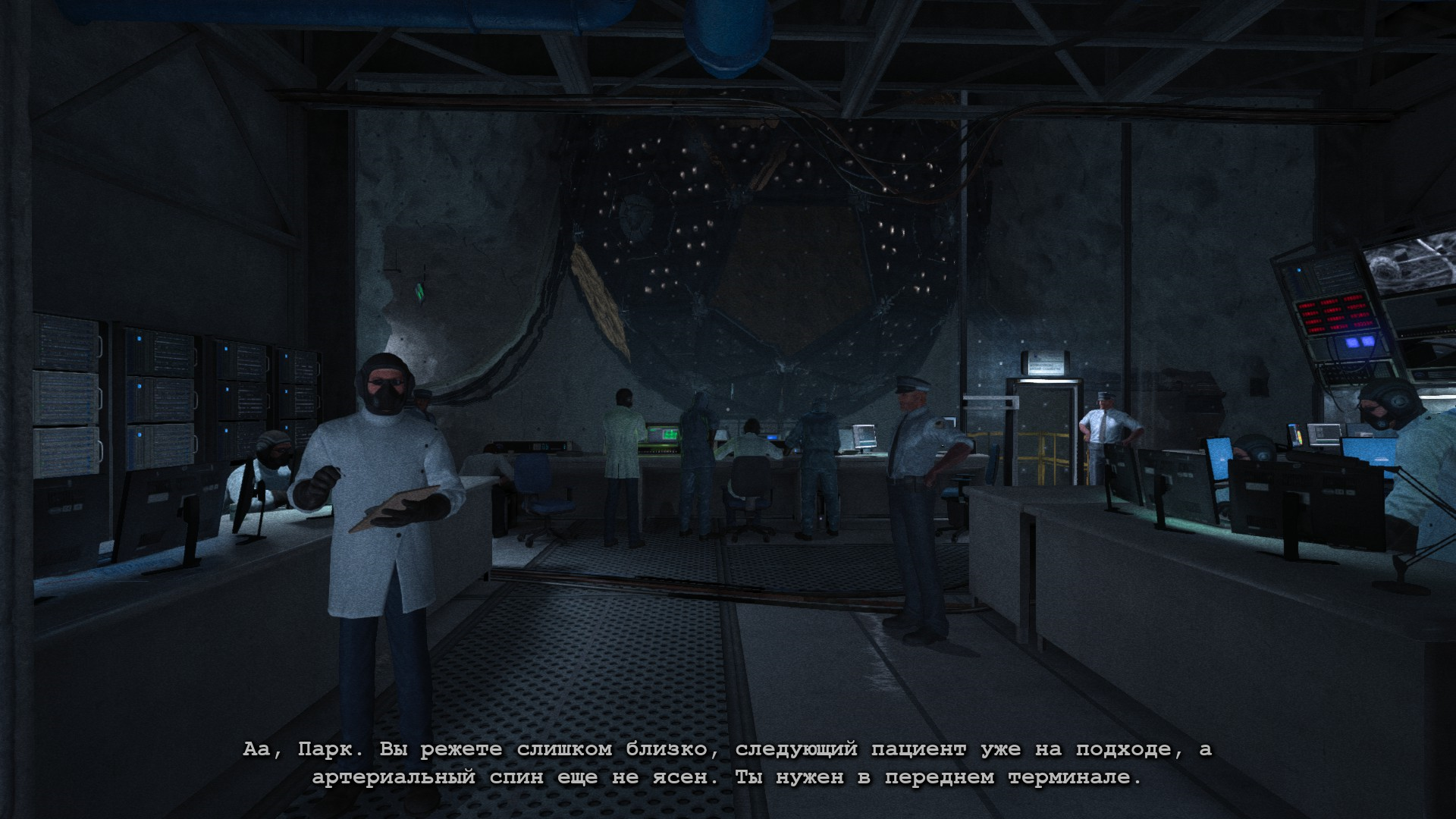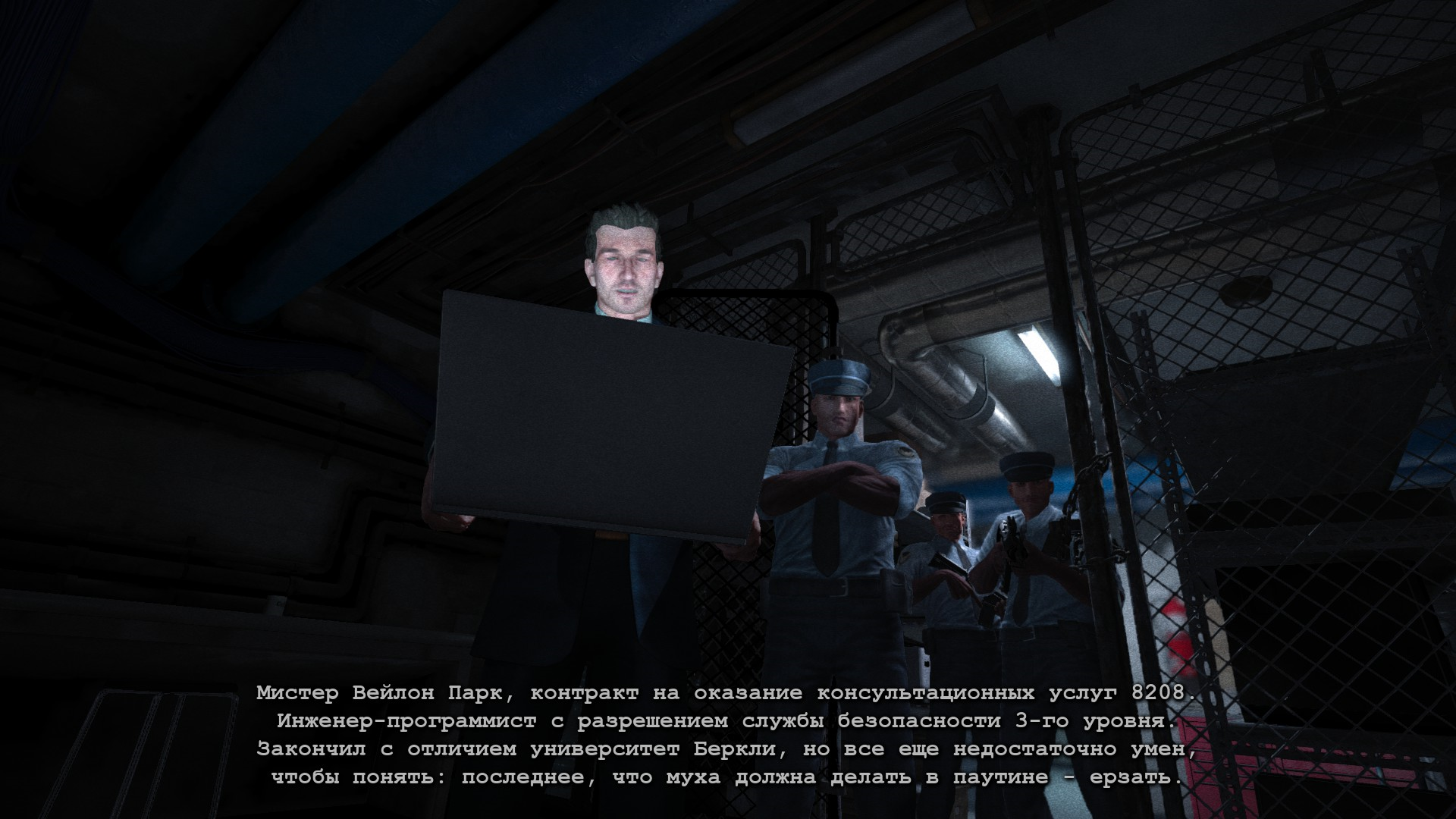 Итак, ГГ пытается открыть ворота из диспетчерской, но приходит Мартин и усыпляет его, причем оставляет в тюремном блоке.