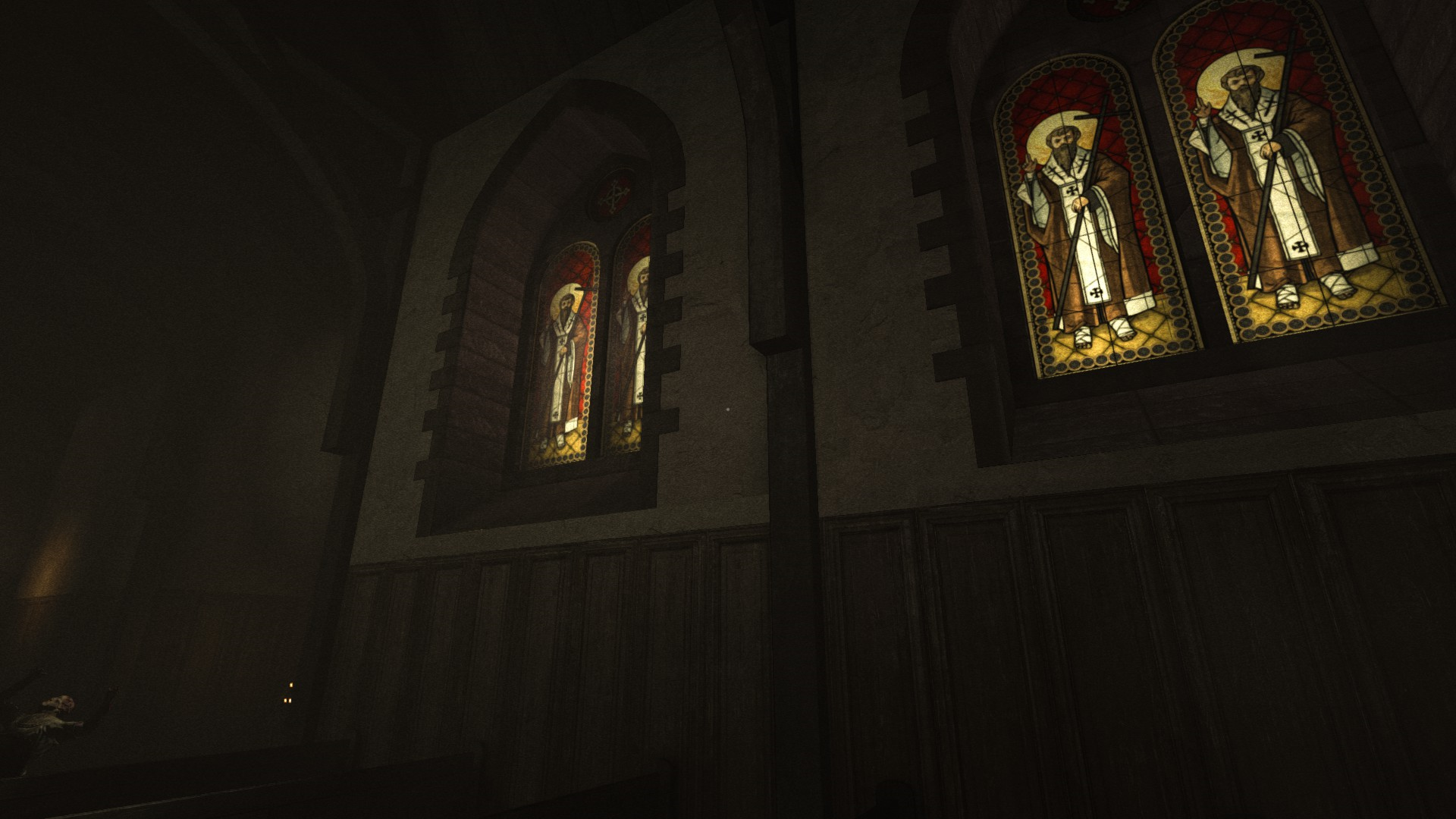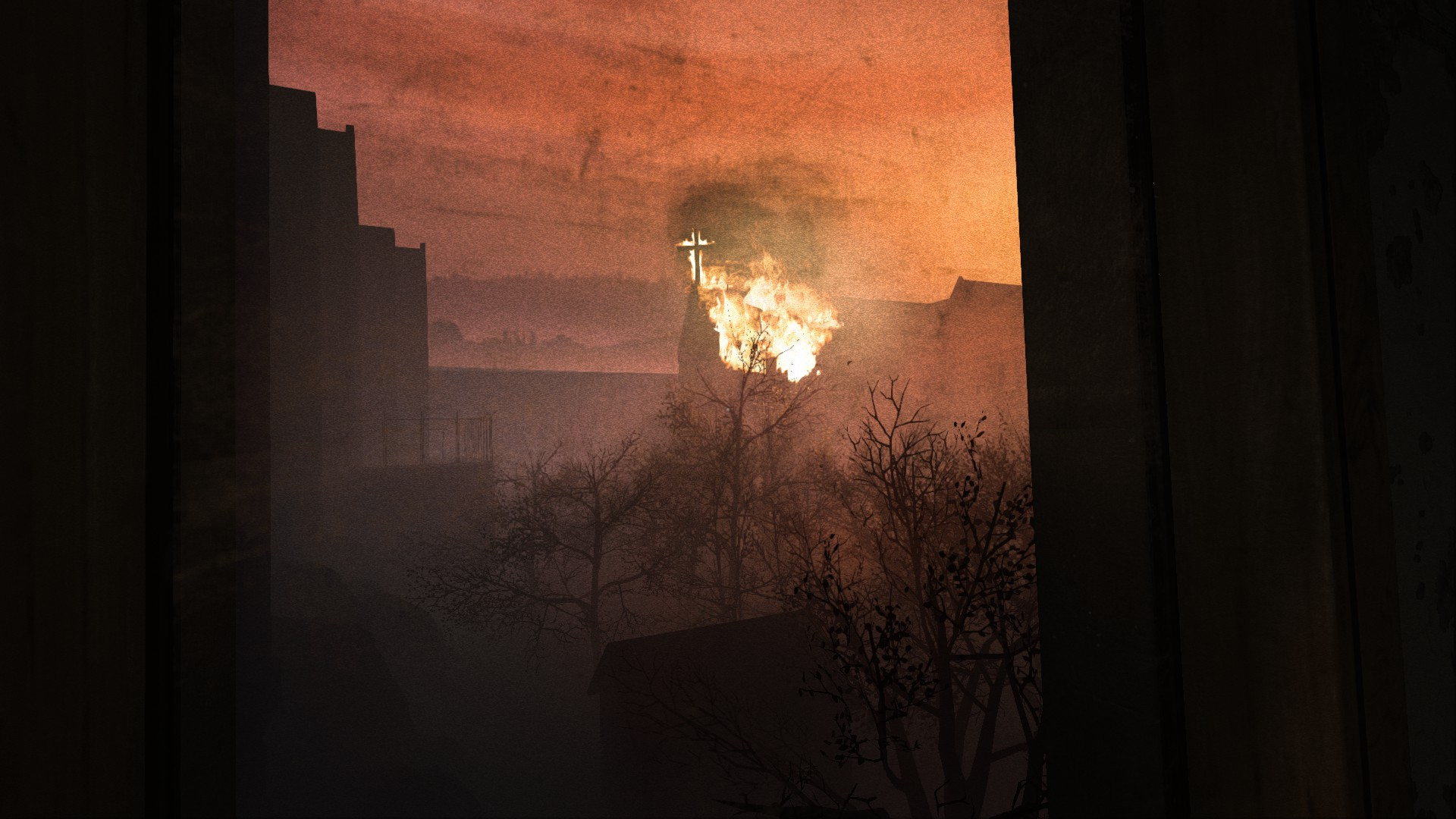 Можно увидеть горящую часовню, труп врача Трагера и стрельбу по поводу Вальридера.