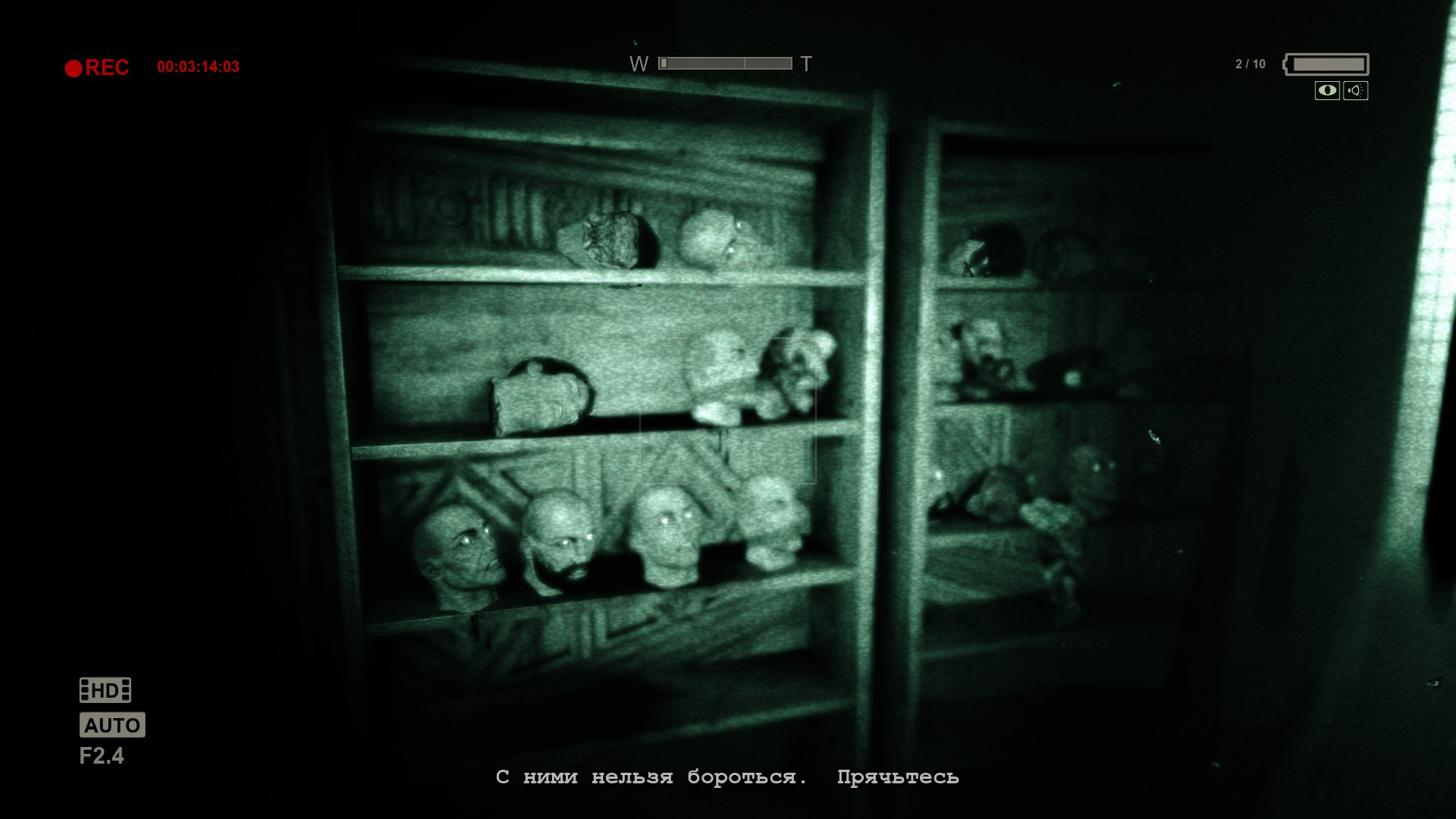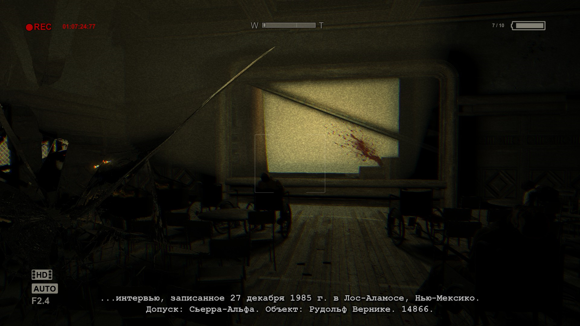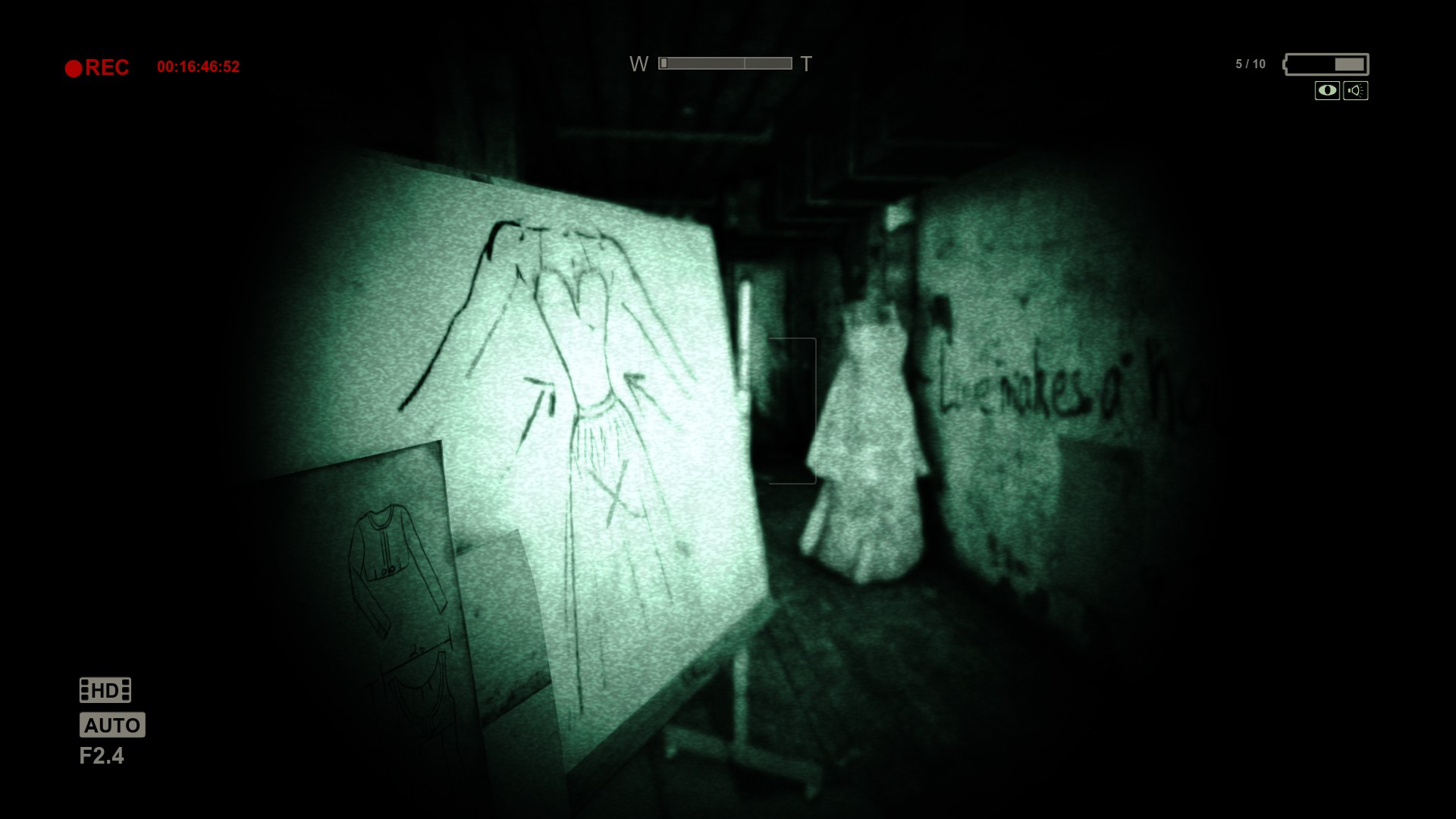 Без батареек ты не сможешь смотреть с камеры ночного видения, а без этого в темных местах пройти дальше довольно таки трудно. Кстати, о камере, она действительно записывает все происходящее, если вы заснимете ключевой момент, то Майлз напишет об этом в своих заметках. Самое интересное, что игра провоцирует исследовать территорию, потому что надо находить батарейки, и иногда документы, но это приходиться делать возле психов и другой хероты, которая так и байтит игрока на ожидаемый ужас.
