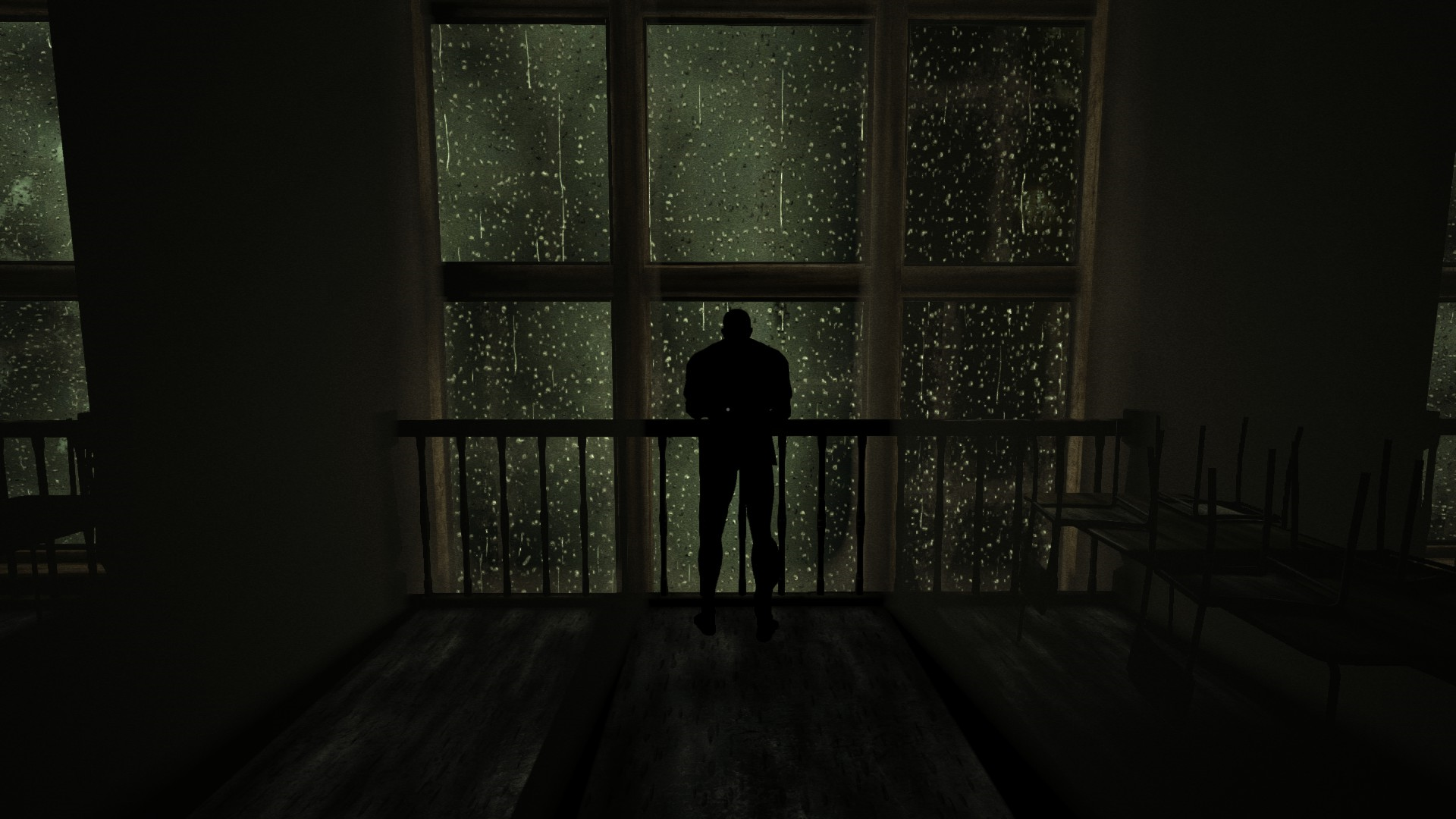 Наконец-то представляется шанс выйти наружу - ГГ впервые ощущает страх пространства, страх Вальридера, который летает возле журналиста. Дождь, гроза и крики психов усиливают чувство беспомощности и ужасающей атмосферы, а паркан по периметру и вовсе дает понять, что просто так ты отсюда не выберешься.