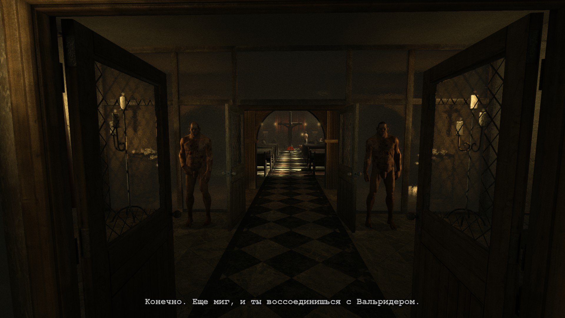 Братья-близнецы указывают ГГ, что надо зайти в часовню. В ней Мартин говорит ГГ, чтобы он снял его самосожжение на камеру, а ключи для выхода он отдает ему самому.