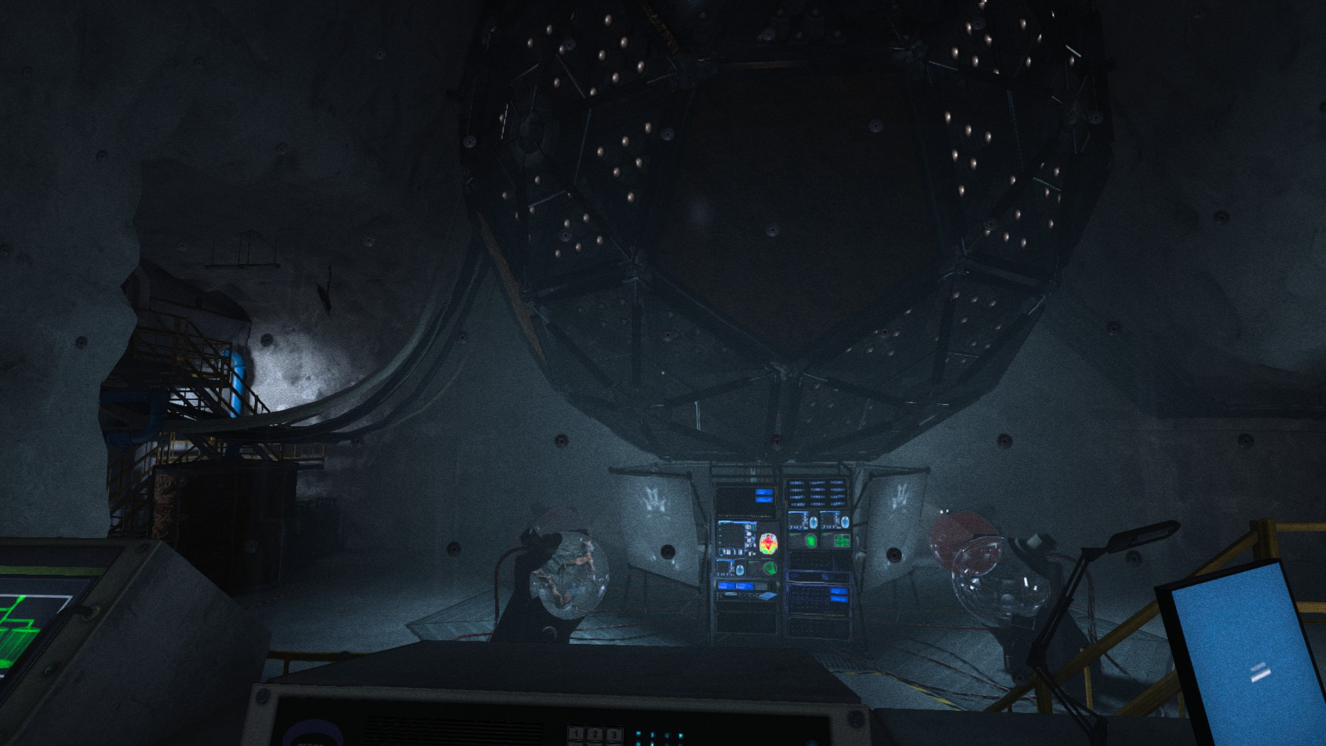 Атмосфера игры меняется с желто-зеленых-выцветших темных коридоров психушки на светлый-ледовитый научный комплекс.