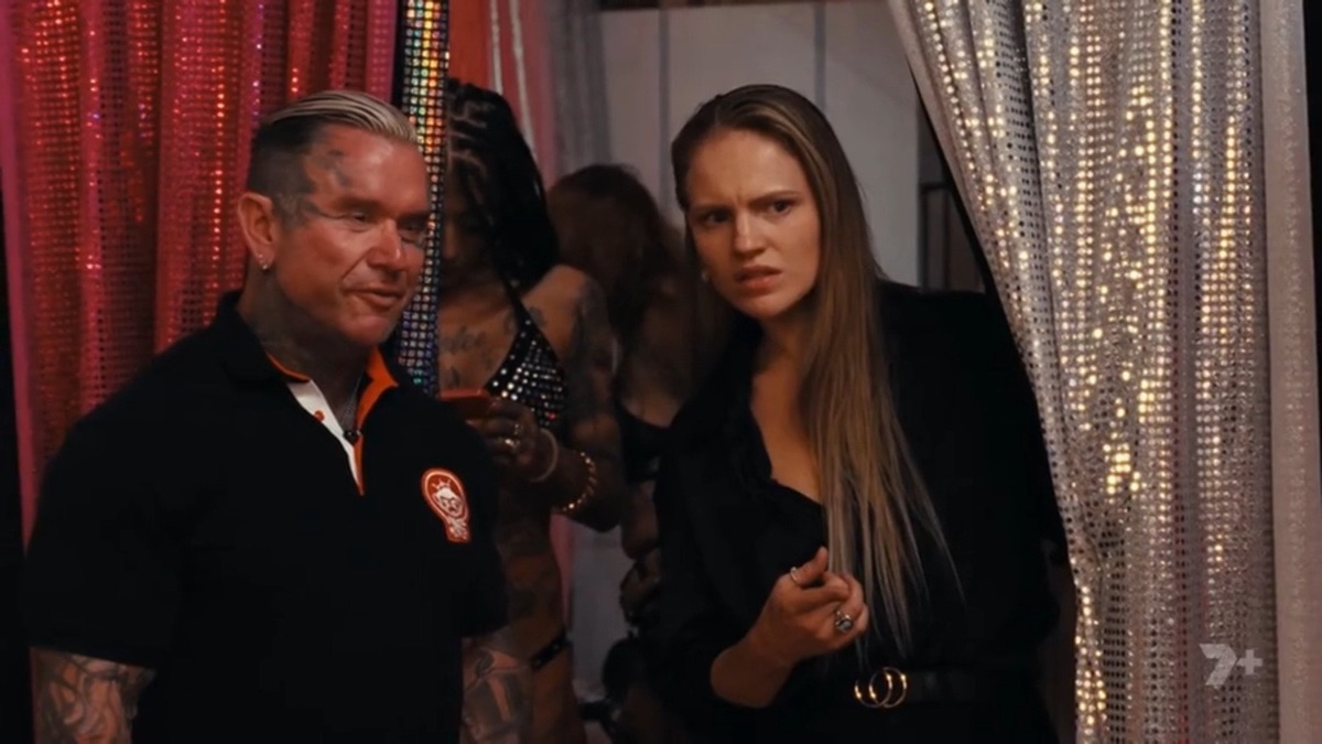 Strapon strap under aerobic leotard