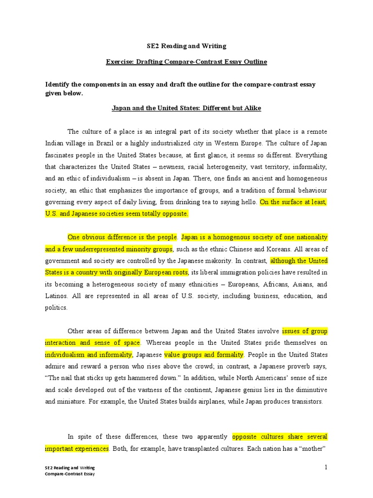 Outline For Compare And Contrast Essay