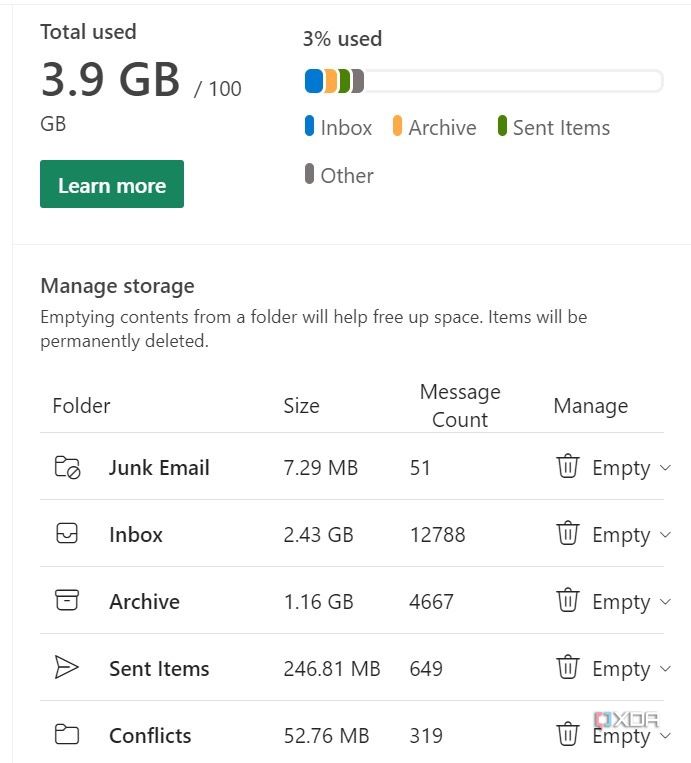 Outlook хранилище сообщений