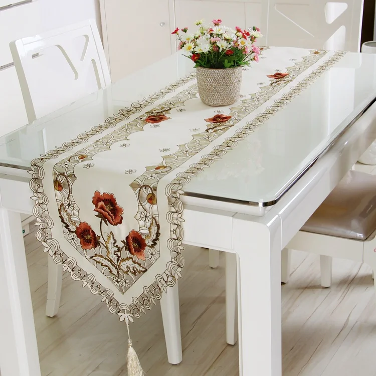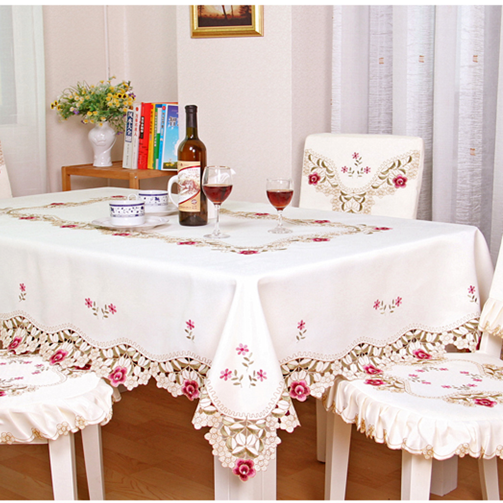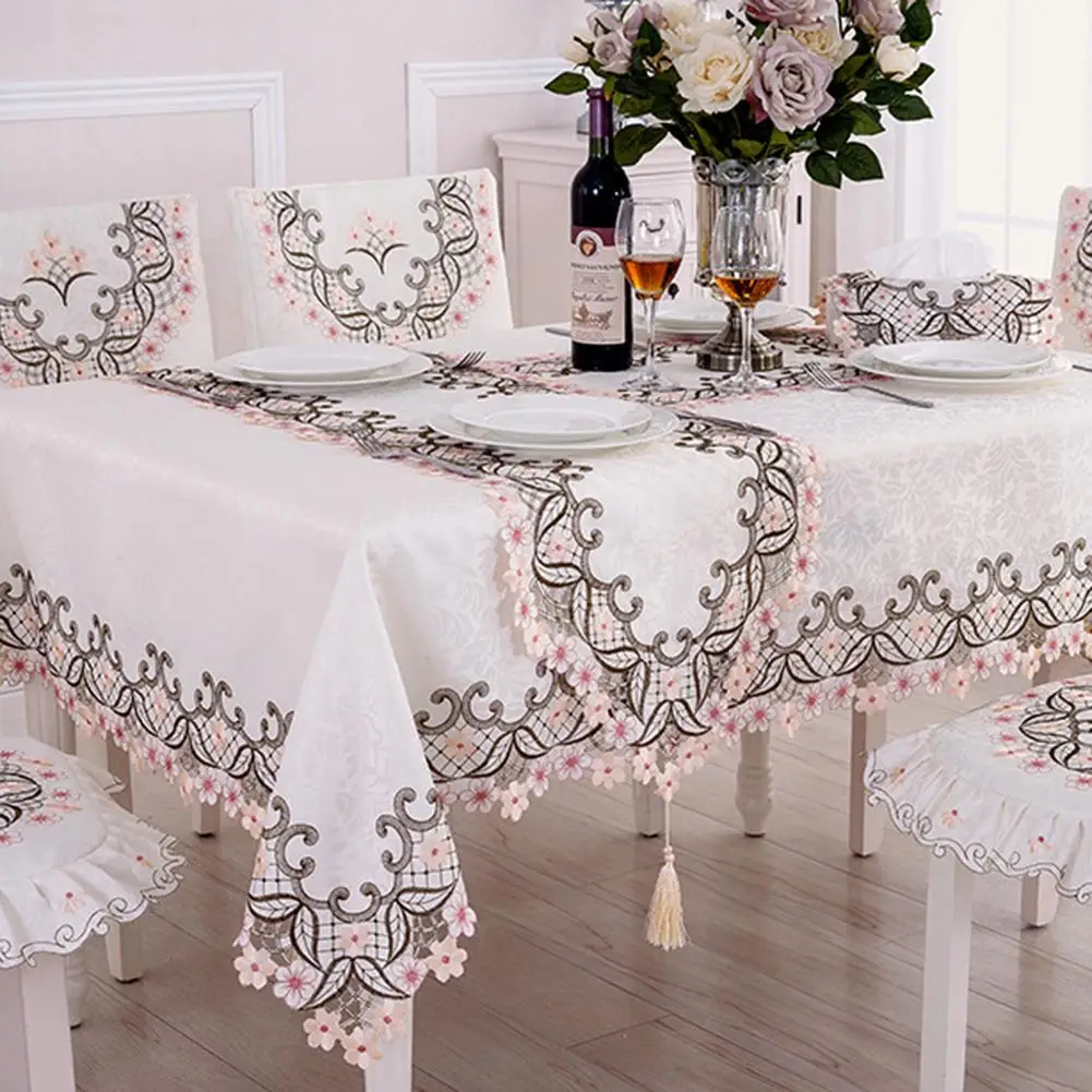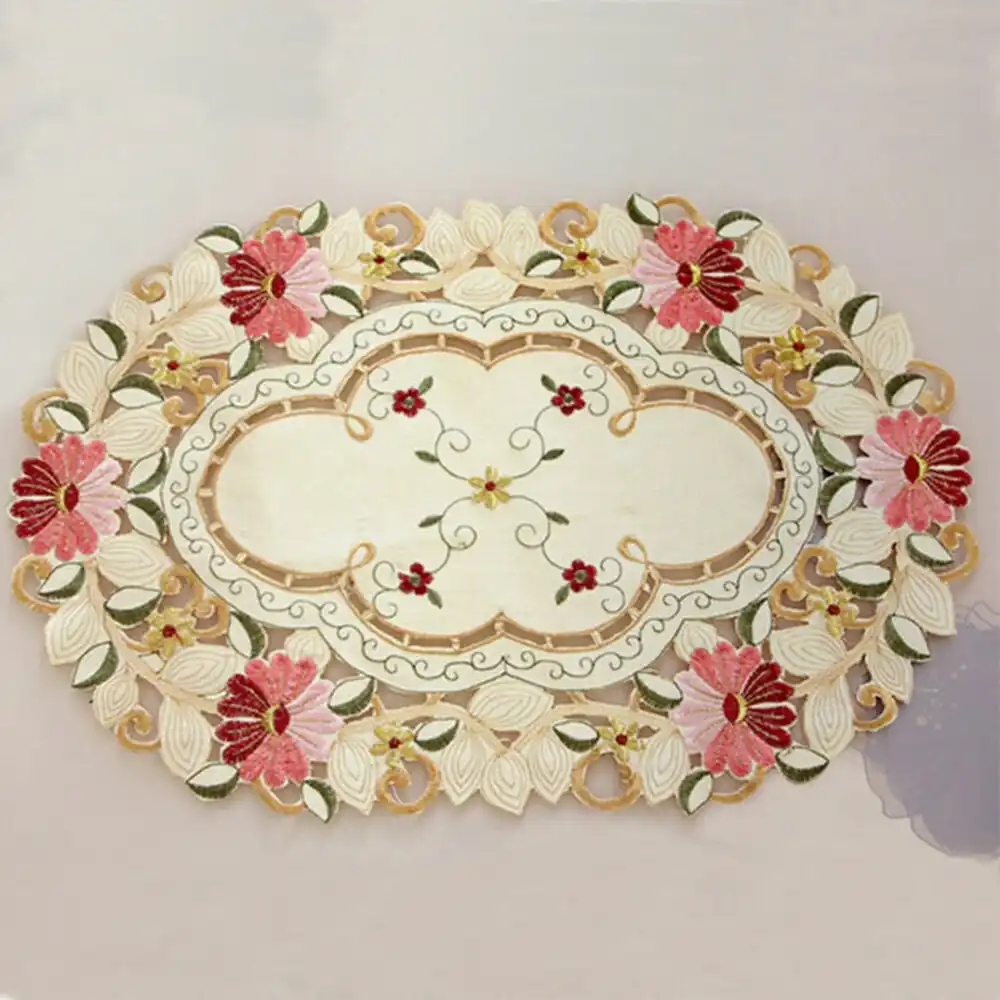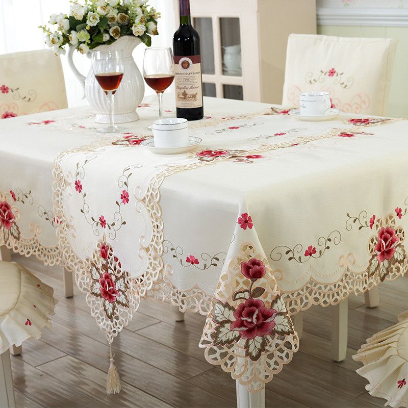 Oval Vintage Embroidered Lace TableclothElegant European Rustic Floral Table Decoration Floral Satin Fabric Table Cloth