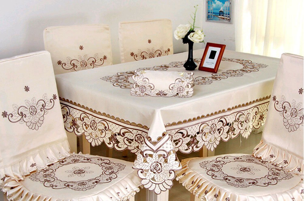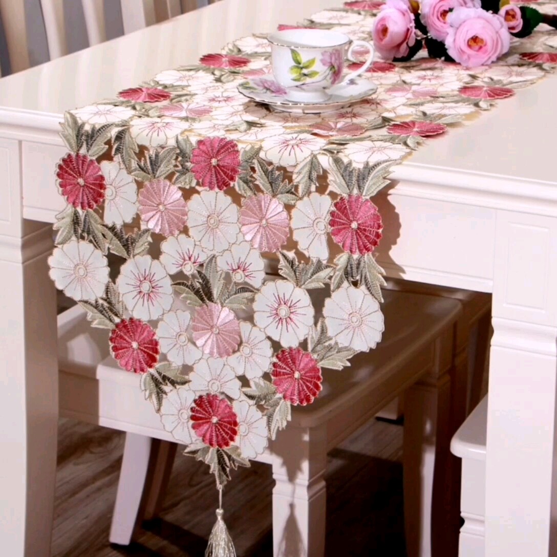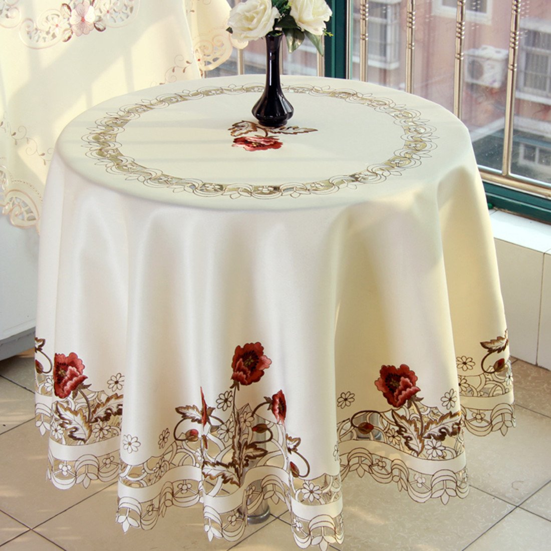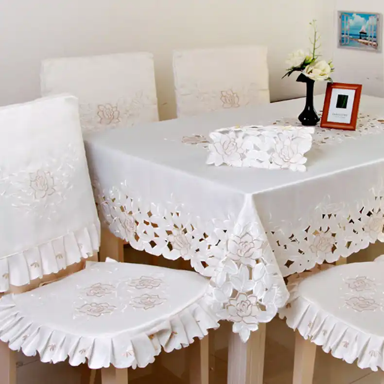 Oval Vintage Embroidered Lace TableclothElegant European Rustic Floral Table Decoration Floral Satin Fabric Table Cloth