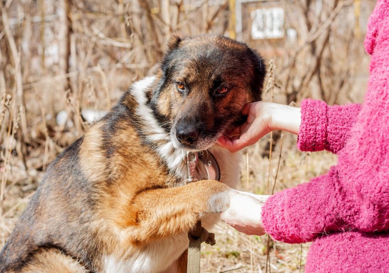 Овчарка дает лапу