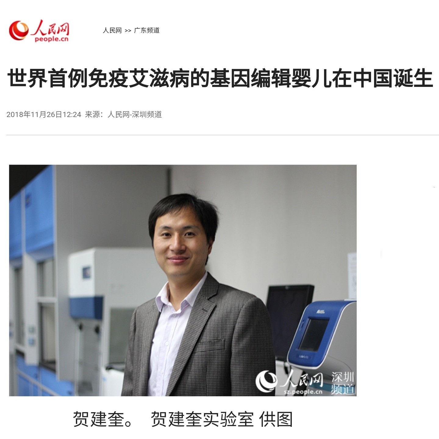 [01]人民网 - 世界首例免疫艾滋病的基因编辑婴儿在中国诞生