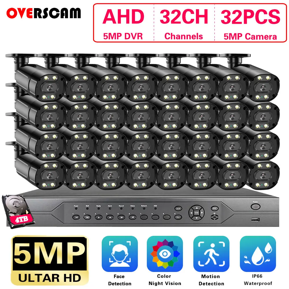 Overscam 5MP CCTV Camera Full Color Night Vision 32CH DVR Security Camera System Set XMEYE Video Surveillance AHD System Kit - Купить с бесплатной доставкой