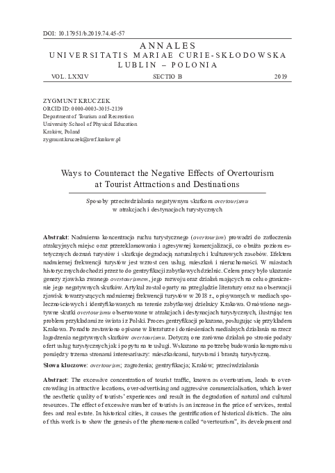 PDF The negative impacts of overtourism on tourism destination . . .