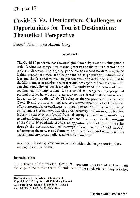 Overtourism and Impacts on Destination . In the recent past, the concept of overtourism has introduced heated debate among different invested parties and remains one of the most discussed issues in popular media . According to research, the issue of overtourism is multidimensional and complex, which explains the difficulties in resolving it . . .