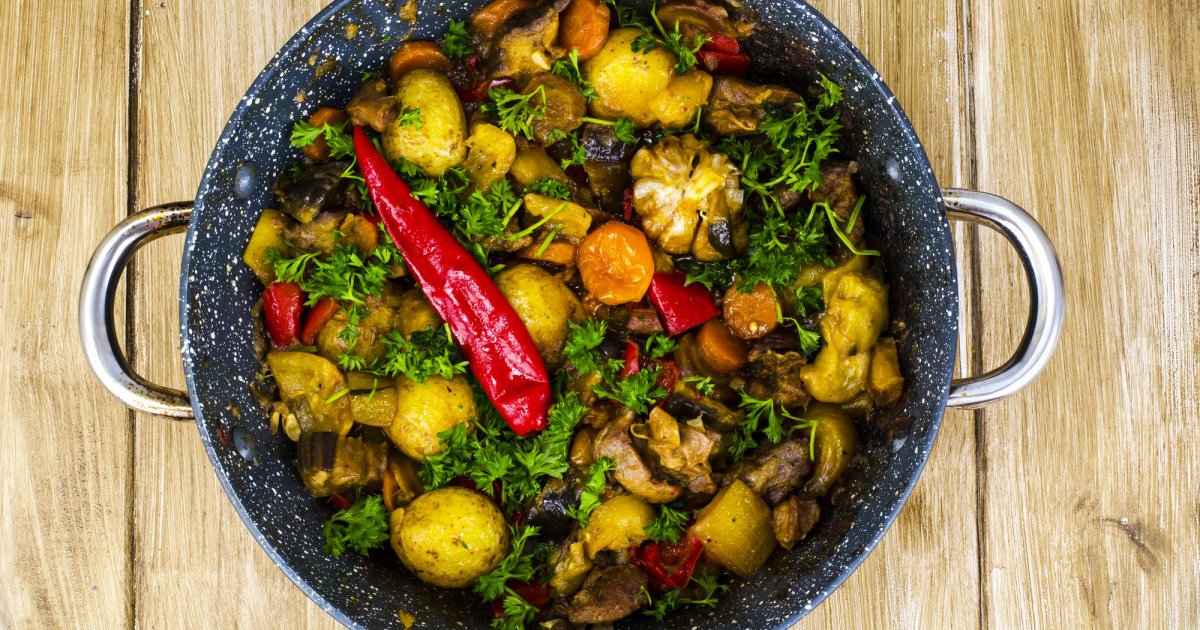 Овощи с мясом в казане как называется