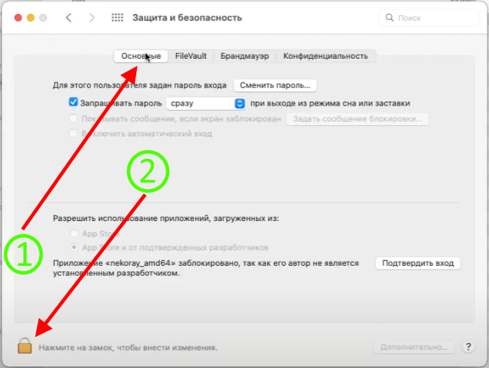 ▪️ -> Основные ->жмём на "ЗАМОК" ->