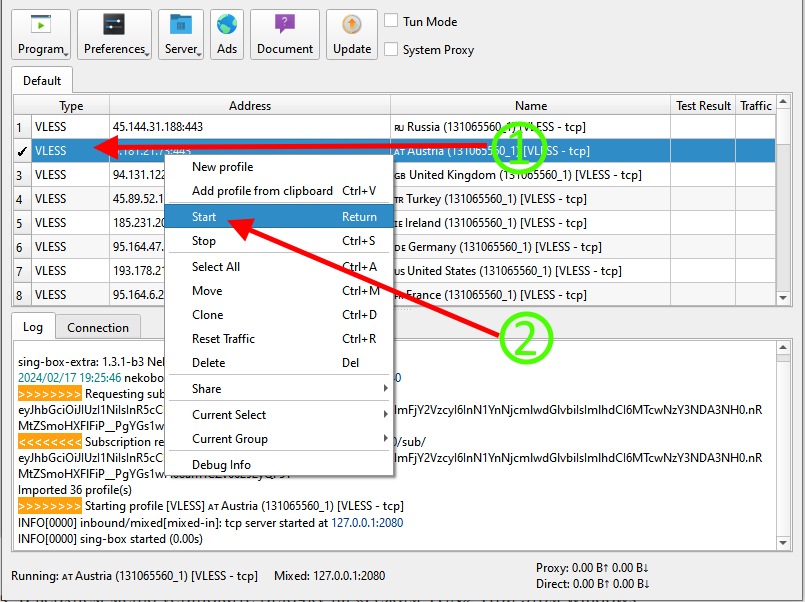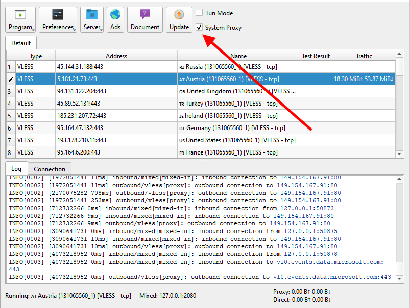 Важно! Вы так же можете использовать режим «System Proxy», но нужно понимать, что использовать совместно режим «Tun Mode» и режим «System Proxy» не нужно!
