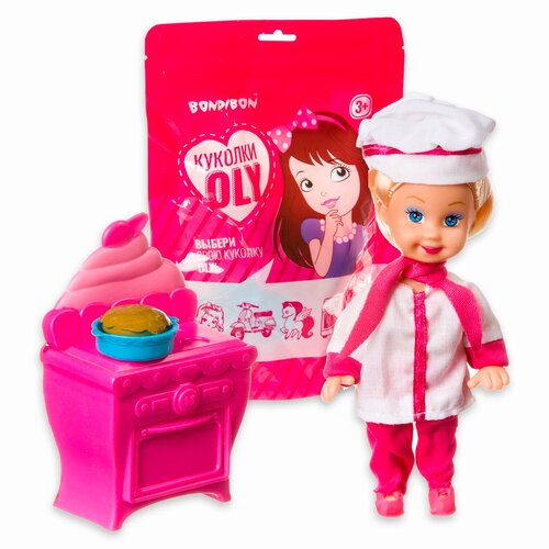 Çantalardaki OLY bebekleri, uzun saçlı, benzersiz ve ilginç aksesuarları olan bebeklerdir: mobilyalar, evcil hayvanlar, bir at ve hatta bir araç. Bu sette OLY bebeği, özel bir şapka ve kostümün yanı sıra bir fırın ve pişmiş yemekle sevimli bir aşçı olarak sunuluyor! Mini bebek yaparken detaylara ve çeşitli aksesuarlara özellikle dikkat edilir. Bondibon - parlak fikirler ve eğlenceli girişimler için!